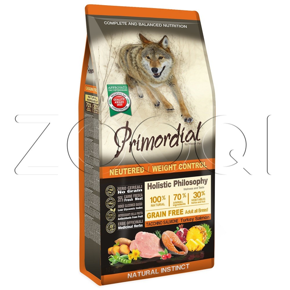 Primordial Dog Adult Neutered / Weight Сontrol — беззерновой корм-холистик для взрослых стерилизованных и/или склонных к набору веса собак.