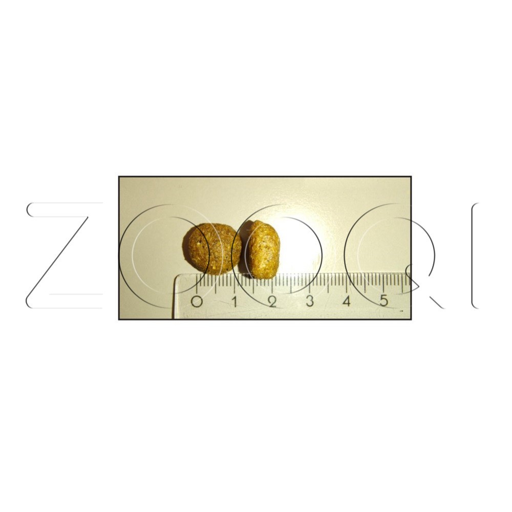 Влажность – 8%, Сырой белок – 27%, Сырая клетчатка – 4%, Сырой жир – 12,5%, Сырая зола – 8,5%, Кальций – 1,25%, Фосфор – 1%, Магний – 0,1%, Омега-3 – 0,52%, Омега-6 – 2,5%.