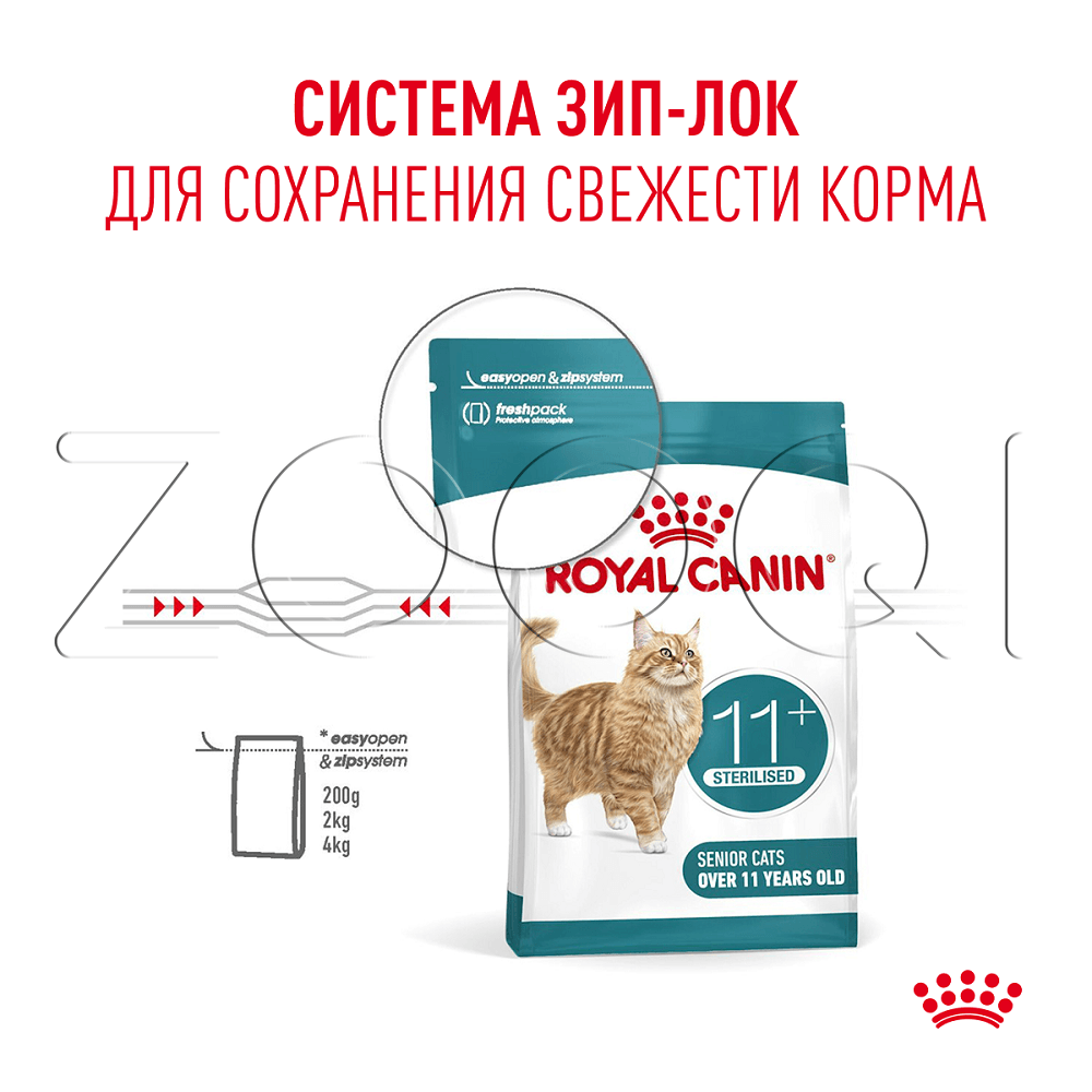Royal Canin Ageing Sterilised 11+ (Эйджинг Стирилайзд) – полнорационный сухой корм для стерилизованных или кастрированных кошек в возрасте 11 лет и старше.