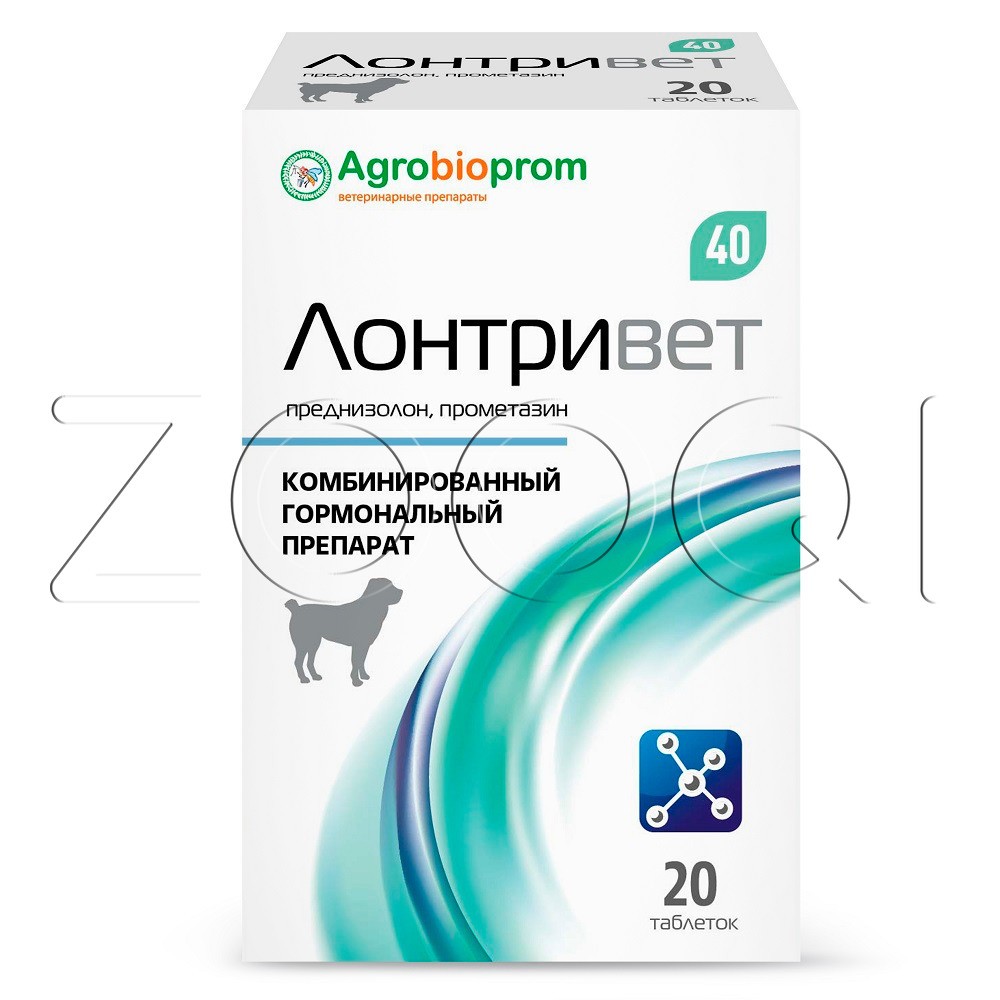 Лонтривет 40 с содержанием в 1 таблетке в качестве действующих веществ: преднизолона — 40 мг, прометазина гидрохлорида — 20 мг.