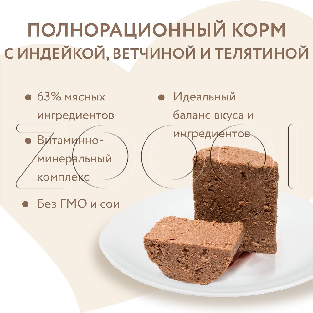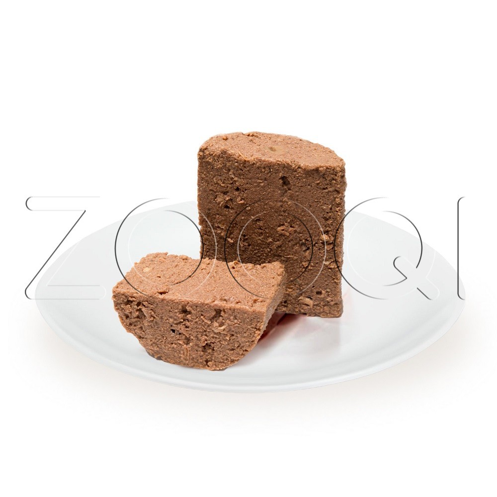 Индейка 38%, ветчина свиная 15%, телятина 10%, витамины, минеральные вещества, свекловичная клетчатка, льняное масло 0,1%.