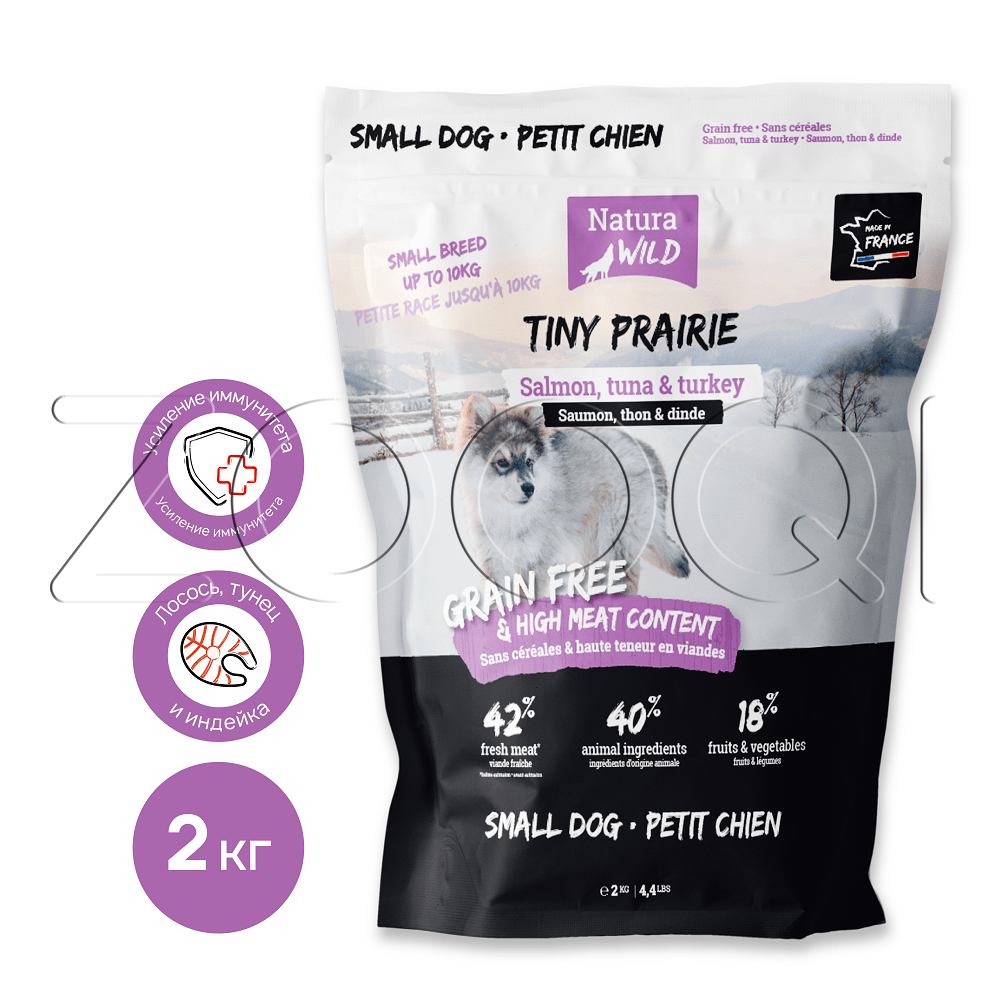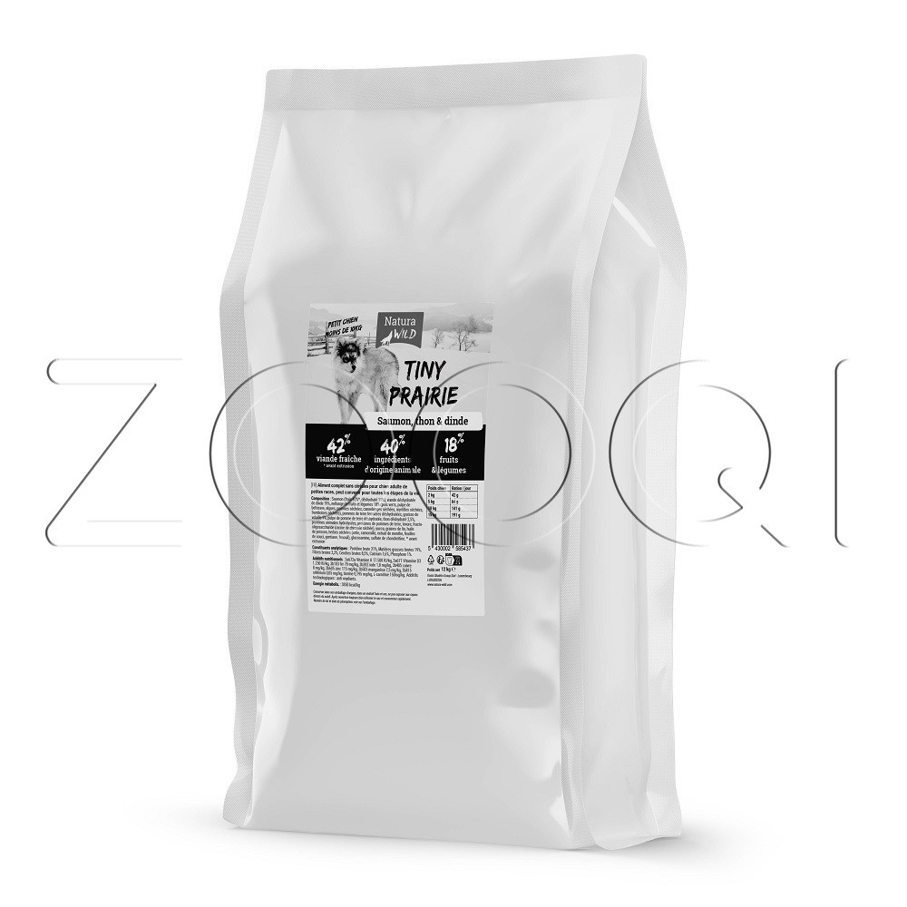 Natura Wild Tiny Prairie Small Dog Salmon, Tuna, Turkey — полнорационный беззерновой корм для взрослых собак миниатюрных пород (до 10 кг).
