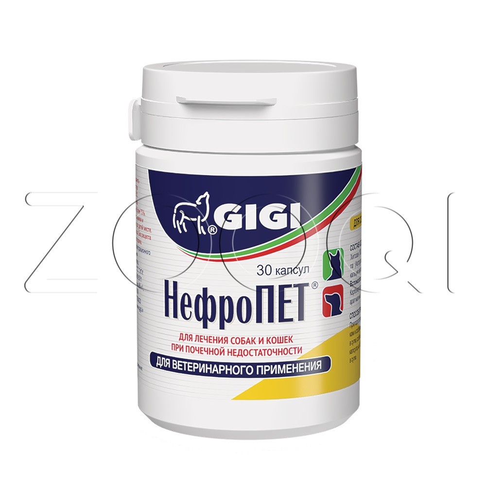 GIGI НефроПЕТ (NefroPET) применяют собакам и кошкам при хронической почечной недостаточности с явлениями гиперазотемии для улучшения функционирования почек и мочевыводящих путей, для нормализации pH мочи.