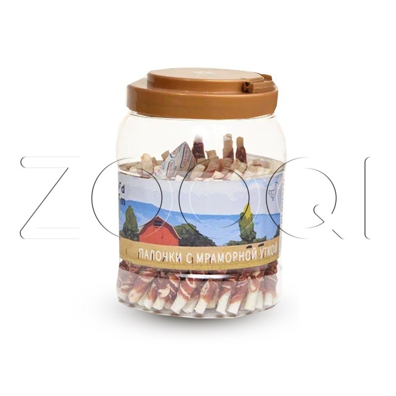 Nord Farm Палочки с мраморной уткой – натуральное лакомство из филе утки с аппетитной мраморной текстурой на сыромятной коже для собак всех пород.