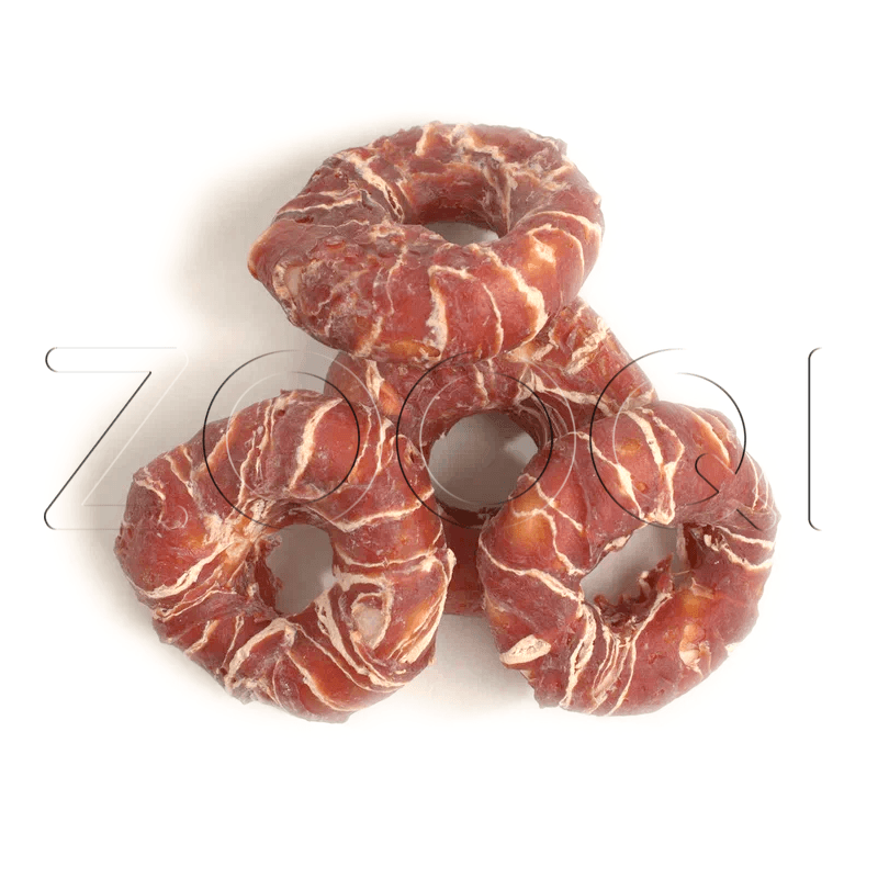 Регулярные тренировки жевательных мышц способствуют укреплению зубов. Вяленое мясо полезно щенкам от 3-х месяцев в период бурного роста и развития. Пончики являются прекрасной альтернативой обычным косточкам для жевания, удовлетворяя потребности питомца в игривом и полезном перекусе.