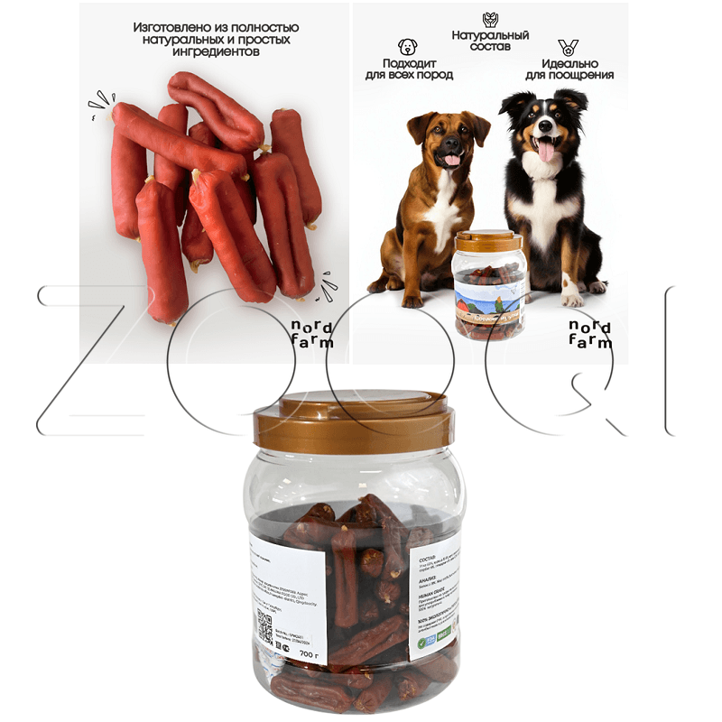 Лакомства Nord Farm – только натуральное мясо, без СОИ, искусственных добавок, консервантов и красителей. Широкий ассортимент вкусов и форм. Вся продукция проходит строгий контроль качества и соответствуют международным стандартам.