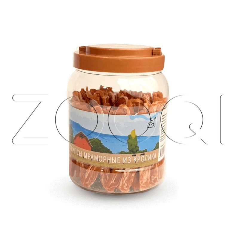 Nord Farm Стрипсы мраморные из кролика – натуральное лакомство из филе кролика с аппетитной мраморной текстурой, которое подходит для щенков от 3-х месяцев и всех пород собак.