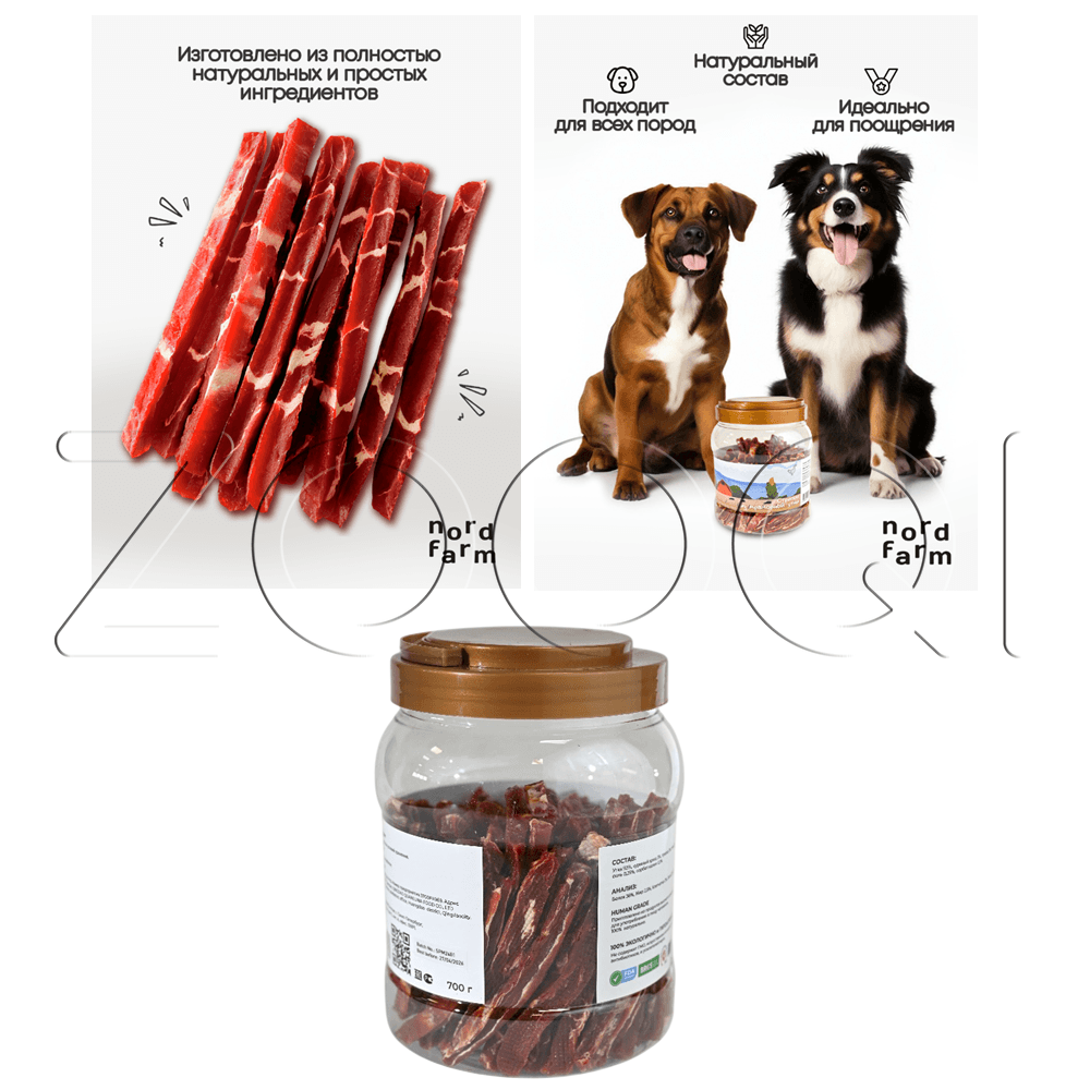 Лакомства Nord Farm – только натуральное мясо, без СОИ, искусственных добавок, консервантов и красителей. Широкий ассортимент вкусов и форм. Вся продукция проходит строгий контроль качества и соответствуют международным стандартам.