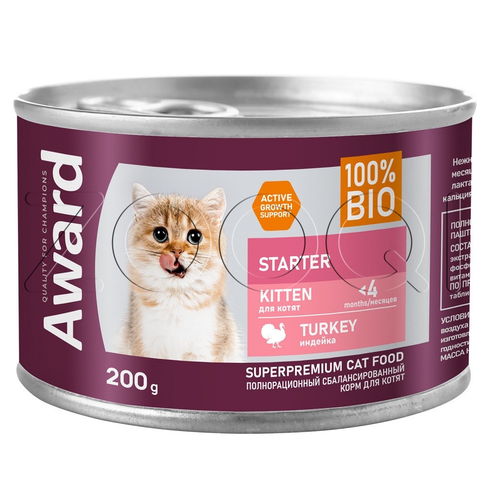 Award Kitten Turkey – полнорационный сбалансированный корм из индейки для котят с начала прикорма до 4 месяцев, беременных и кормящих кошек.