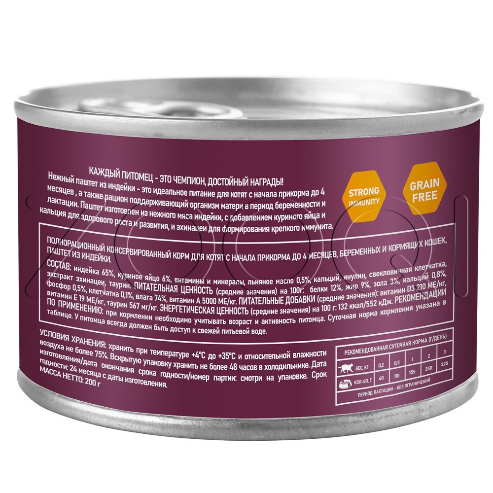 Нежный паштет из индейки – это идеальный прикорм для котят с начала прикорма, а также рацион поддерживающий организм матери в период беременности и лактации.