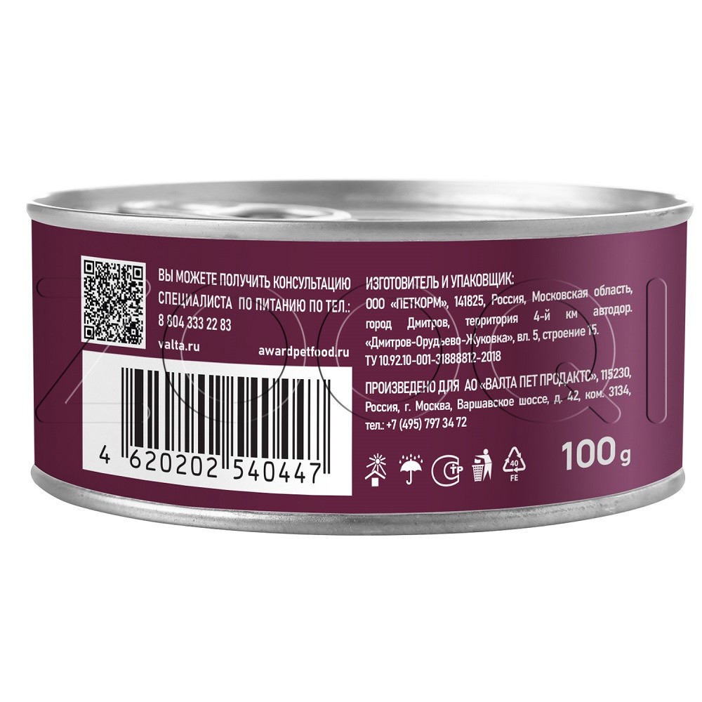 Производитель (завод): ООО «ПЕТКОРМ», 141825, РФ, Московская обл., Дмитровский р-н, г.п. Дмитров, Территория 4-ый км автодороги «Дмитров-Орудьево-Жуковка», вл. 5, стр. 15.