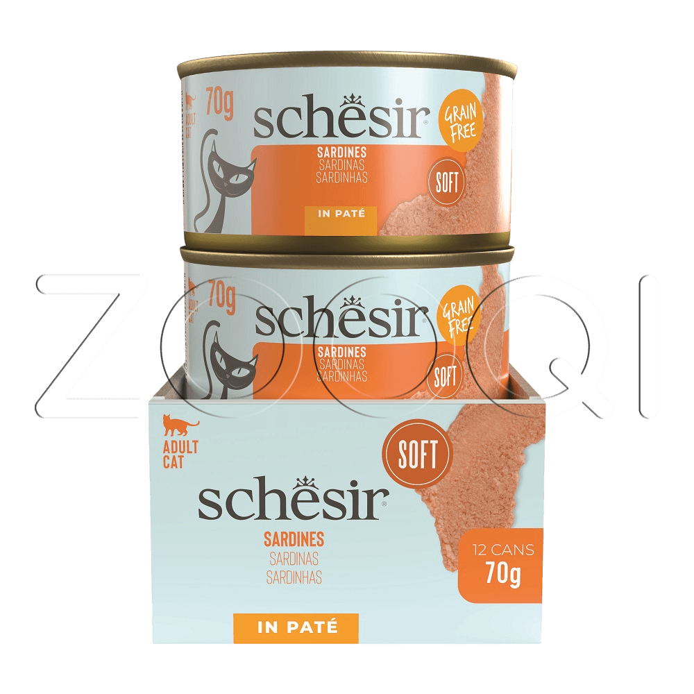 Schesir Cat Grill Pate can Sardines – сбалансированый паштет с сардинами для взрослых кошек.