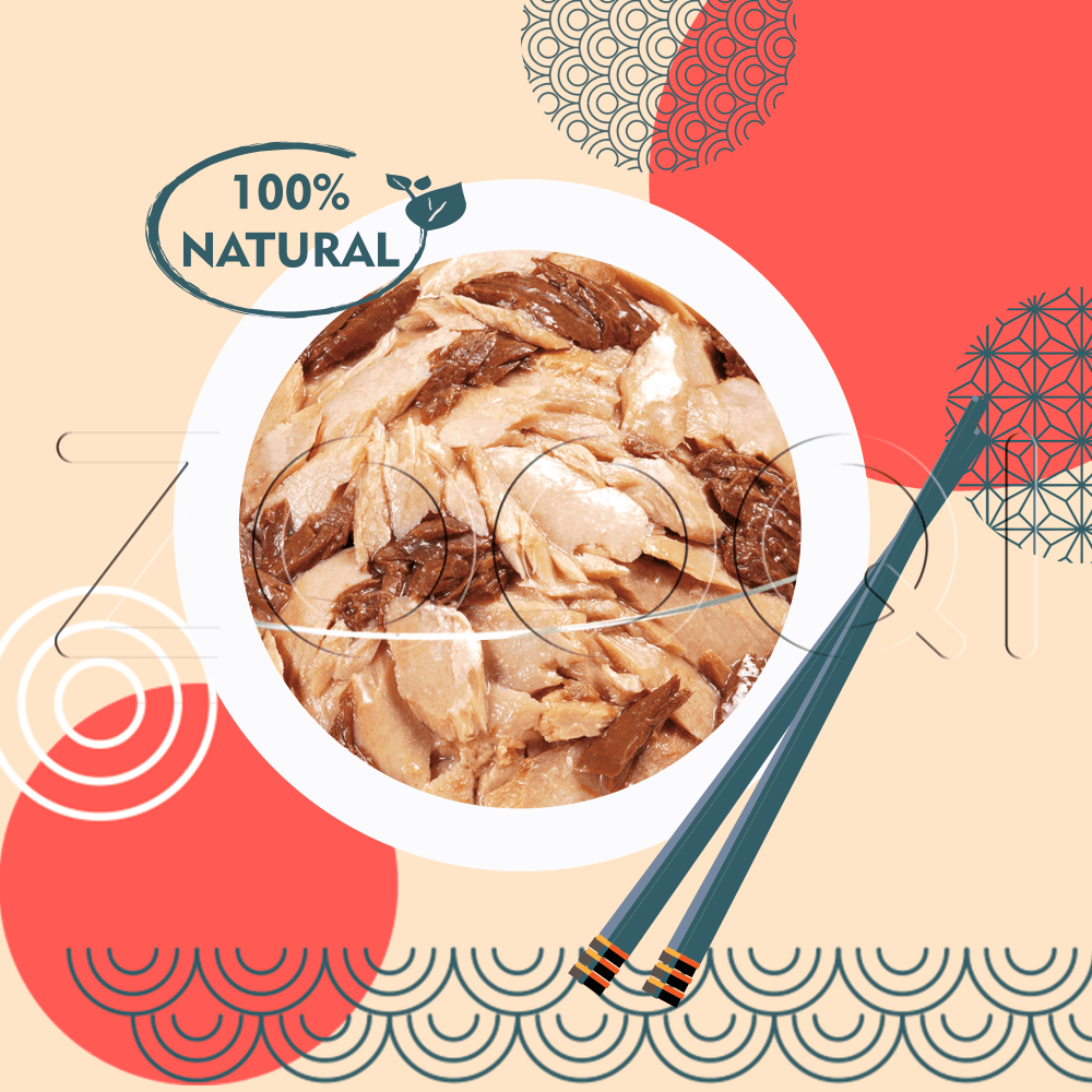 Тунец Кацуо, тунец Магуро, крахмал, экстракт морского гребешка, экстракт тунца Кацуо, агар-агар, загуститель, экстракт зеленого чая, краситель (красный ферментированный рис).