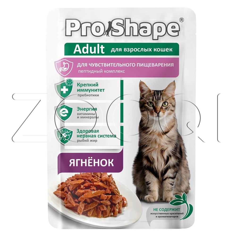 ProShape Adult – консервированный полнорационный корм с ягненком в соусе для взрослых кошек с чувствительным пищеварением.