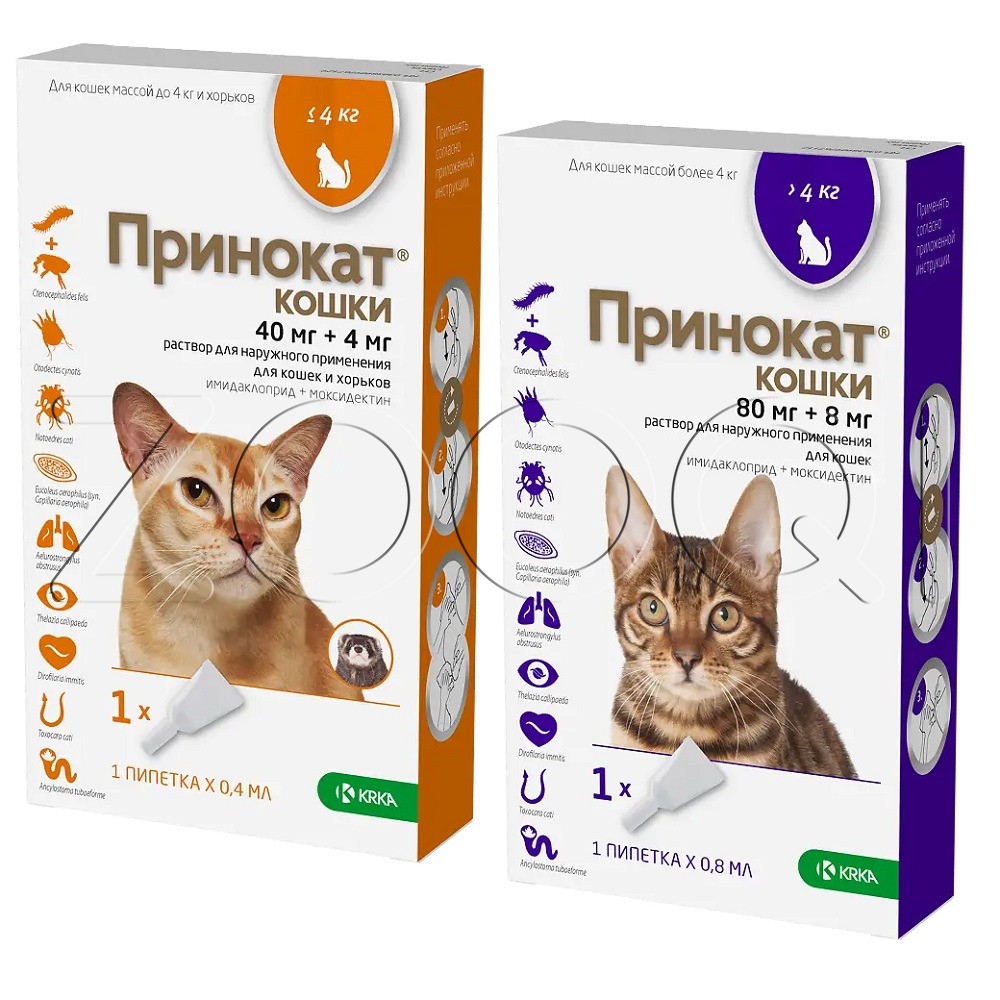Принокат кошки (Prinocate cats) назначают кошкам для лечения и профилактики отодектоза, нотоэдроза, энтомозов, кишечных нематодозов (токсокароза, анкилостомоза), легочных нематодозов (легочного капилляриоза), для профилактики сердечно-легочной формы дирофиляриоза, а также в комплексной терапии блошиного аллергического дерматита.