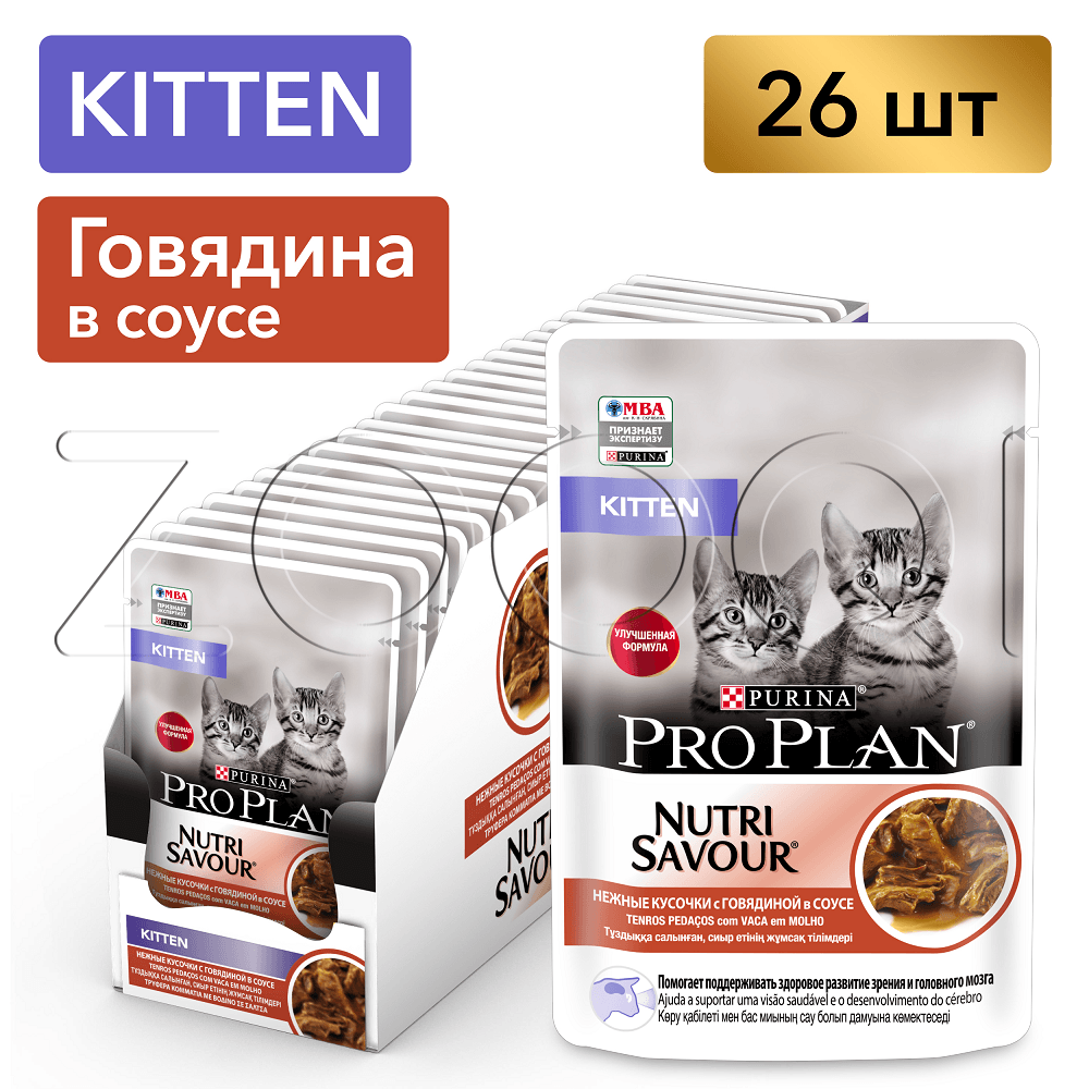 Purina Pro Plan Healthy Start Kitten для котят — полнорационный консервированный корм с говядиной в соусе для котят в возрасте от 2 мес до 1 года.