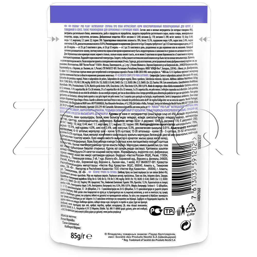 Производитель (завод): Пурина ООО “Нестле Россия“ (Российская Федерация, 115054, Москва, Павелецкая пл., д.2, стр.1)