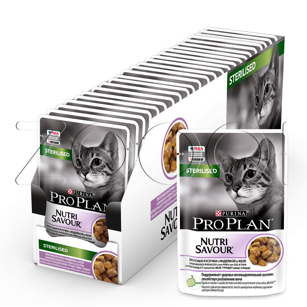 Purina Pro Plan Maintenance Sterilised Adult — консервированный полнорационный корм для взрослых стерилизованных кошек и кастрированных котов, вкусные кусочки с индейкой в желе.