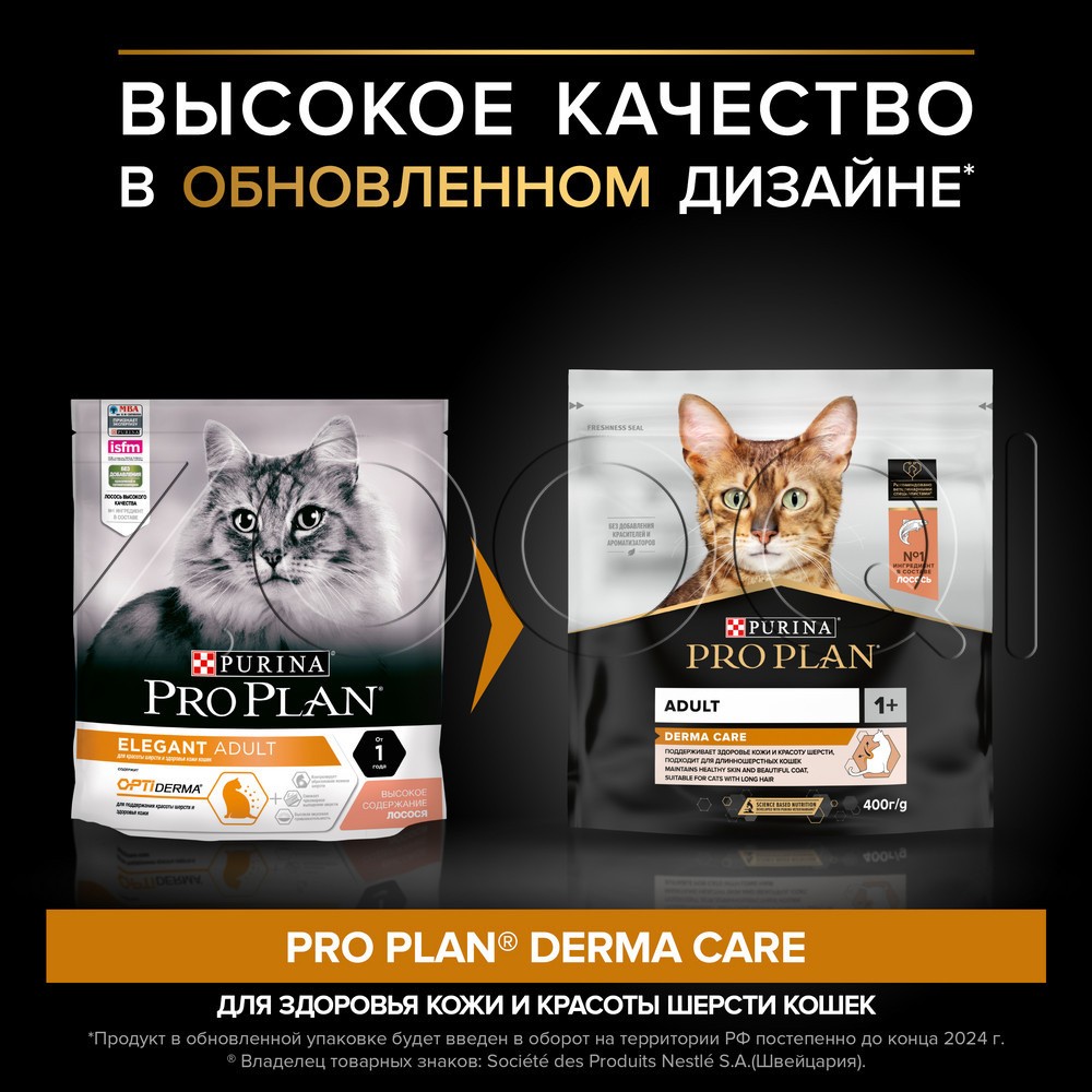 Эксперты Purina разработали рацион для взрослых кошек PRO PLAN Elegant OptiDerma Adult — сухие корма с комплексом, который поддержит здоровье кожи и шерсти.