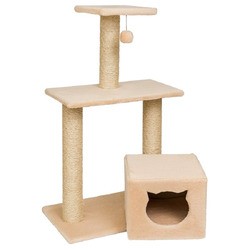 Рядом с когтеточкой расположен просторный домик, в котором ваш любимец может скрыться и отдохнуть. На верхней части расположена мягкая лежанка с бортиком.