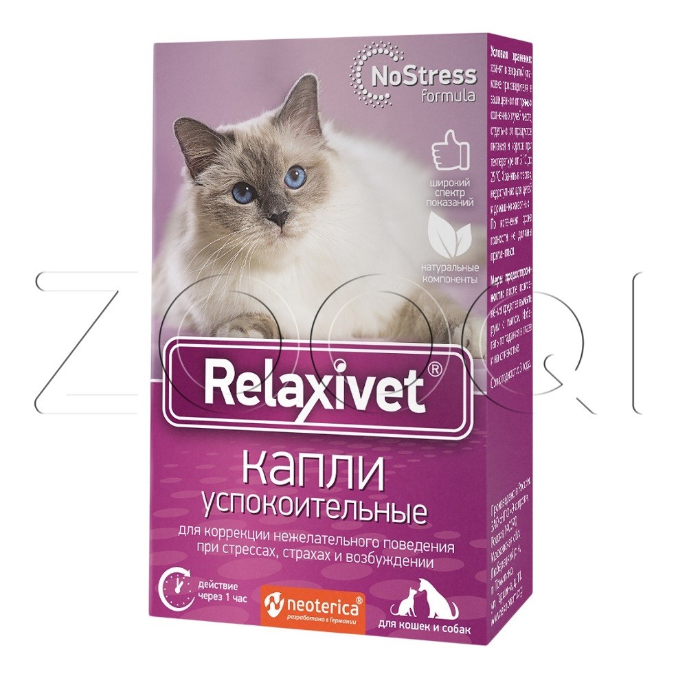 Relaxivet (Релаксивет) Капли успокоительные для коррекции нежелательного поведения при стрессах, страхах и возбуждении у кошек и собак.
