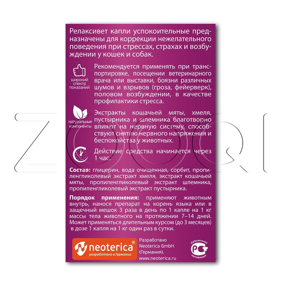 Успокоительные пероральные капли Relaxivet — быстрый эффект в привычной форме: