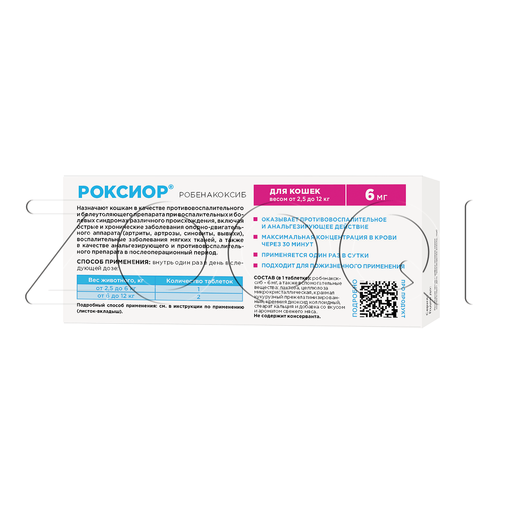 таблетки для кошек с содержанием робенакоксиба - 6 мг/табл.;