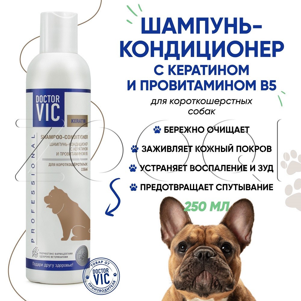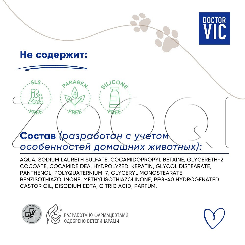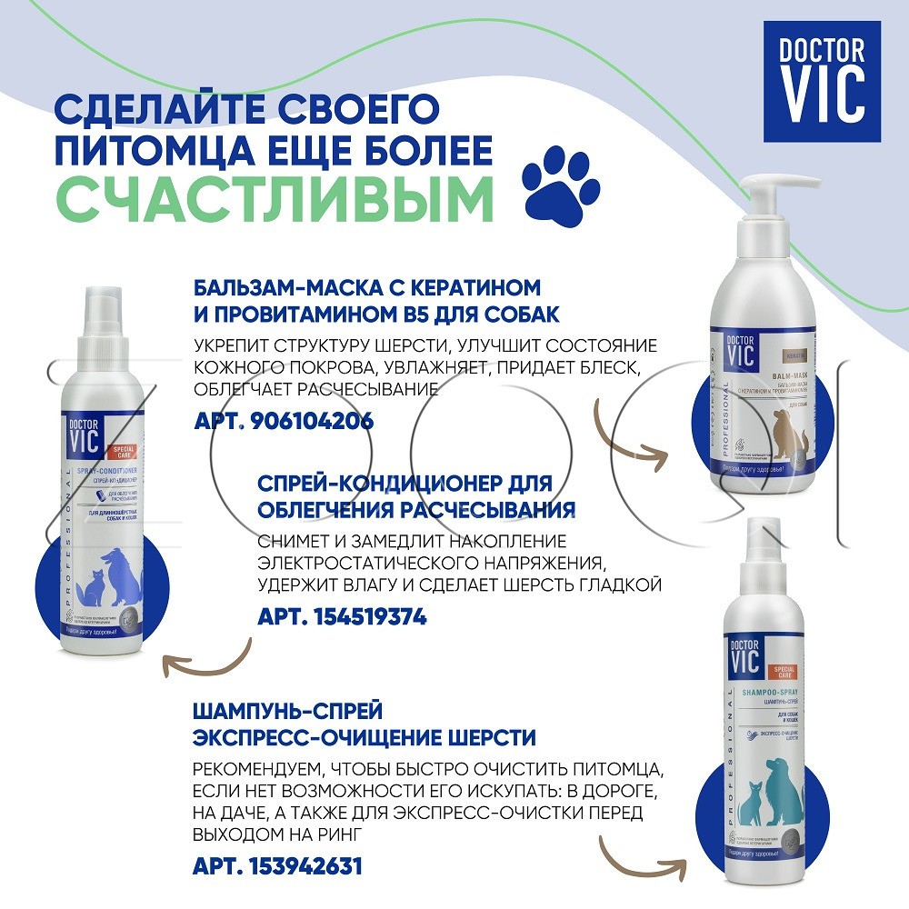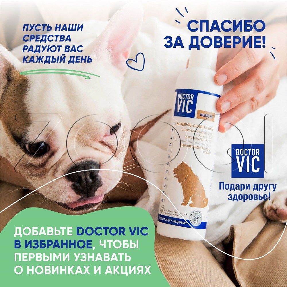 Серия DOCTOR VIC KERATIN направлена на улучшение состояния кожного покрова и восстановление структуры шерсти собаки.