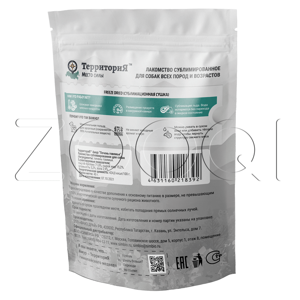 ТерриториЯ Амур Сублимированное лакомство «Печень говяжья» для собак – нативное лакомство, созданное по технологии freeze-drying (сублимационная сушка).