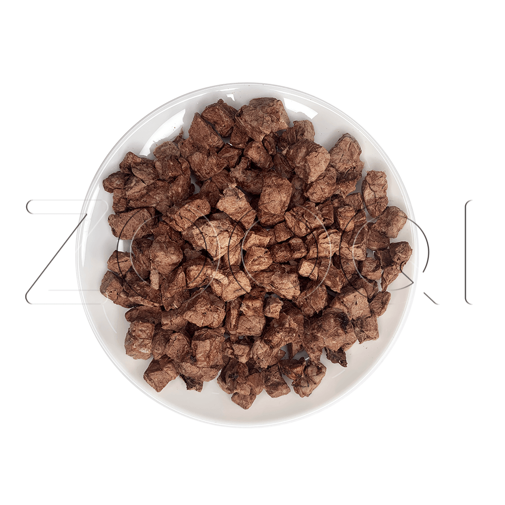Все ингредиенты для лакомств ТерриториЯ поступают на производство в свежем виде. Там для сохранения своих полезных свойств они проходят сверхбыстрое замораживание. Затем в вакуумной камере происходит процесс сублимации, в результате чего замёрзшая влага в ингредиентах испаряется без перехода в жидкое состояние. Это значит, что удаляется только вода, а лакомство сохраняет все свои полезные свойства. Сублимированные продукты не меняют исходные аромат и вкус.