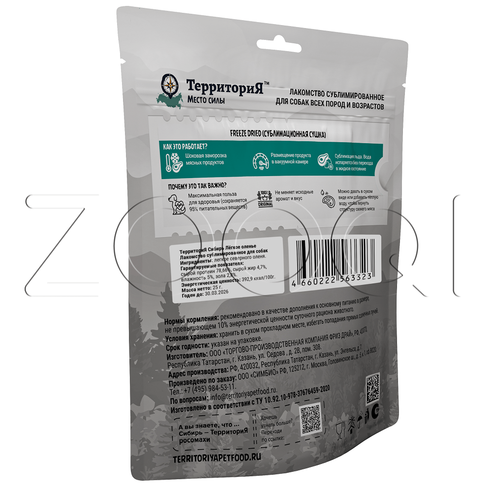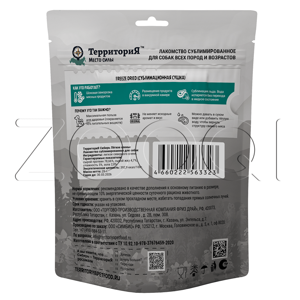 ТерриториЯ Сибирь Сублимированное лакомство «Лёгкое оленье» для собак – нативное лакомство, созданное по технологии freeze-drying (сублимационная сушка).