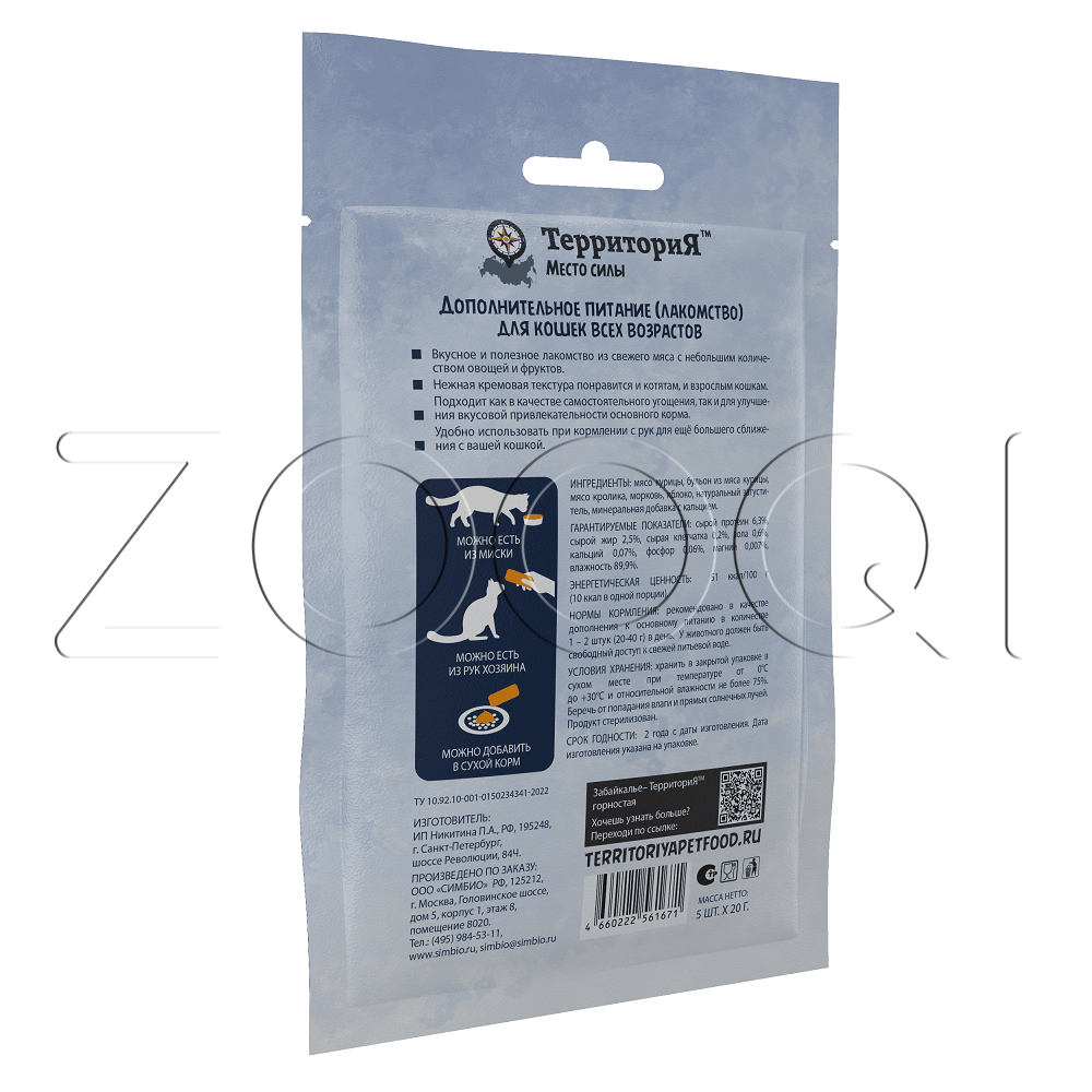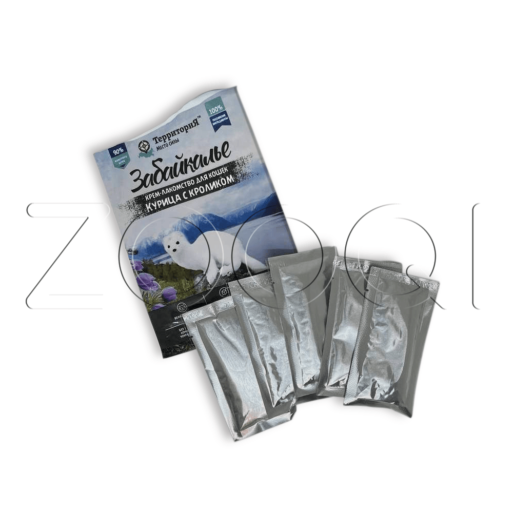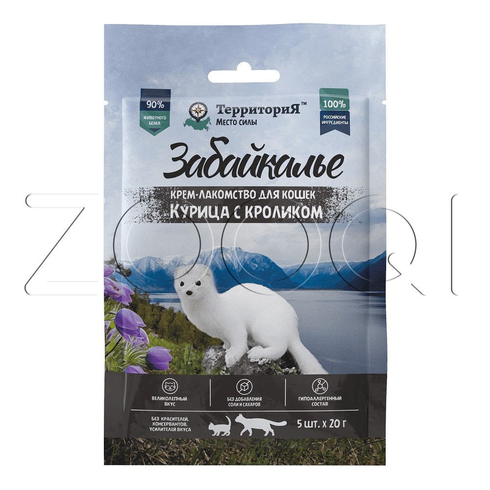 ТерриториЯ Таймыр Крем-лакомство для кошек «Курица с кроликом» – вкусное и полезное лакомство из свежего мяса с небольшим количеством овощей и фруктов. Нежная кремовая текстура понравится и котятам, и взрослым кошкам.