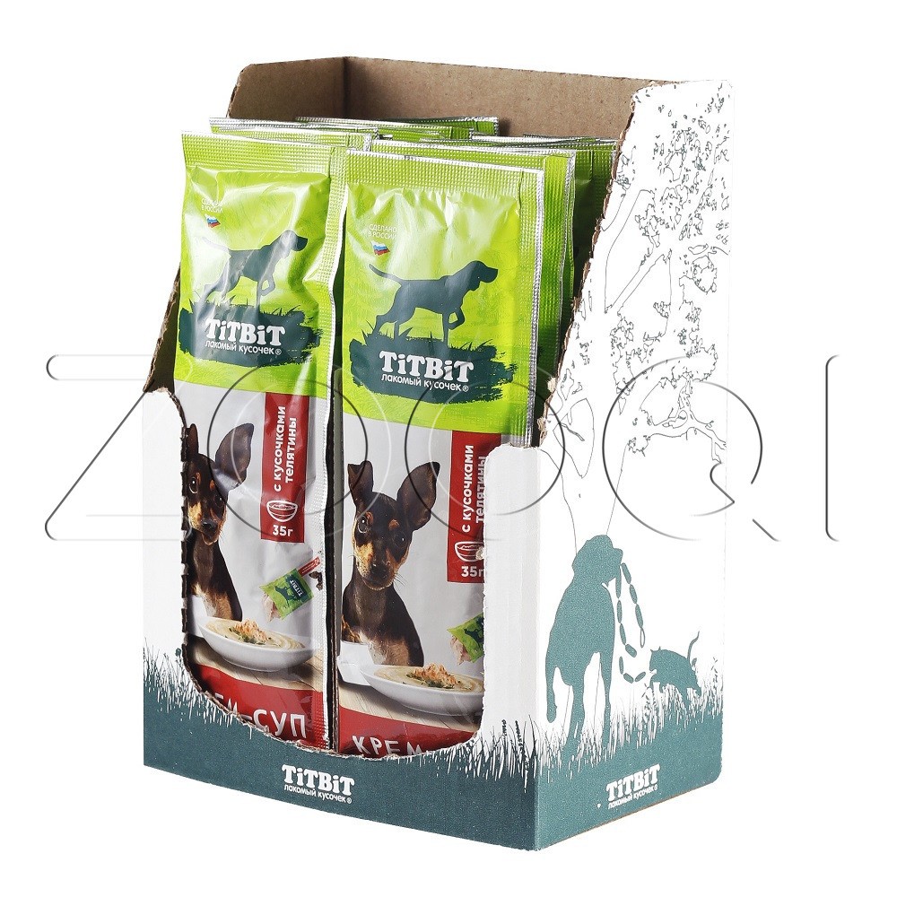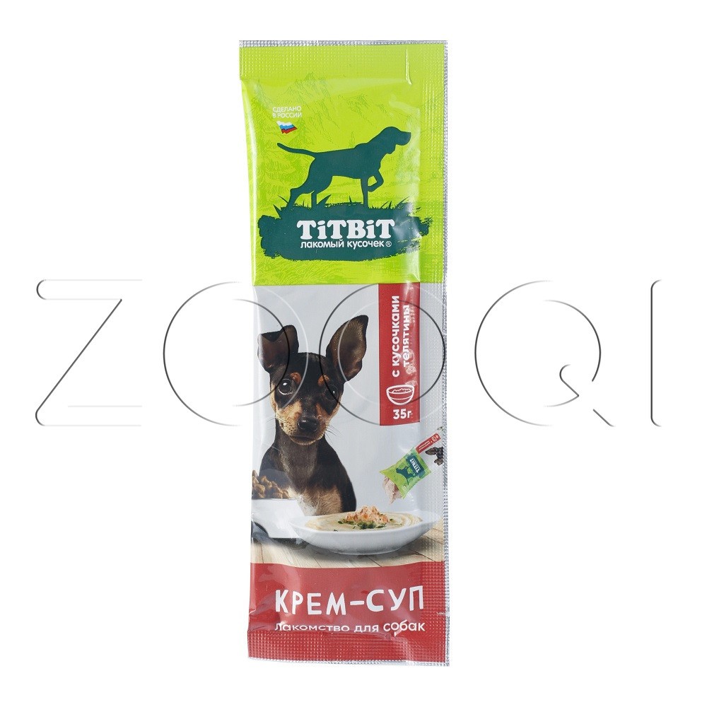 Крем-суп TITBIT – это влажное лакомство, нежной кремовой текстуры с кусочками мяса. Изготовлен из натуральных ингредиентов, содержит 98% мяса. Порция рассчитана на один прием пищи, идеально дополнит и разнообразит рацион вашего питомца. Удобная упаковка позволяет кормить питомца прямо с рук или брать с собой в дорогу. Подходит собакам любых пород и размеров, старше 12 недель.