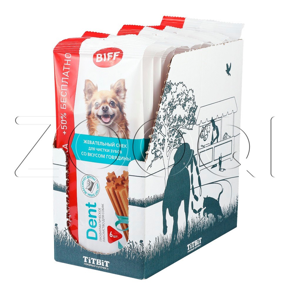 TiTBiT Biff DENT жевательные снеки – это профилактическое лакомство для собак, которое благодаря специально разработанной форме и текстуре, учитывает все особенности мелких пород. Рекомендованы для снятия мягкого зубного налета.