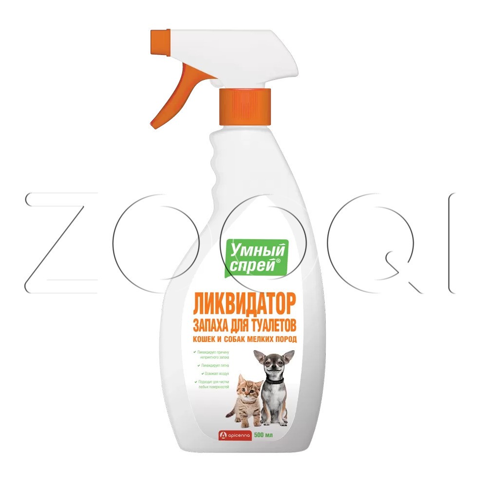Умный Спрей ликвидатор запаха для туалета кошек и собак декоративных пород — средство для нейтрализации неприятных запахов и дезинфекции туалетов кошек и собак декоративных пород. Помогает устранить причину неприятного запаха, предотвратить появление отложений на дне туалета. Средство продлевает срок службы наполнителя в несколько раз!
