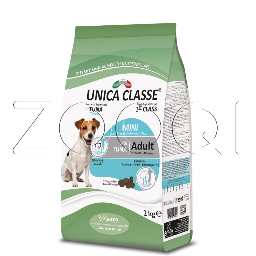 Итальянский полнорационный сухой корм Unica Classe Adult Mini Sensitive с тунцом для взрослых собак малых пород от 10 месяцев до 10 лет. Mini Sensitive предназначен для собак с массой тела от 2 до 10 кг. Корм Unica Classe содержит все необходимые ингредиенты для здоровья Вашего питомца. Основным ингредиентом являются животные белки (тунец), которые являются основным источником аминокислот. В качестве одного из источника углеводов в составе присутствует белое сорго – это альтернативный злак с самым низким гликемическим индексом. С данным кормом Вашему питомцу обеспечен здоровый вид шерсти и кожи. В нём содержится витамин А, биотин, цинк и медь, которые способствуют укреплению кожи. Ускоренному заживлению ран, блеску и яркости шерсти.