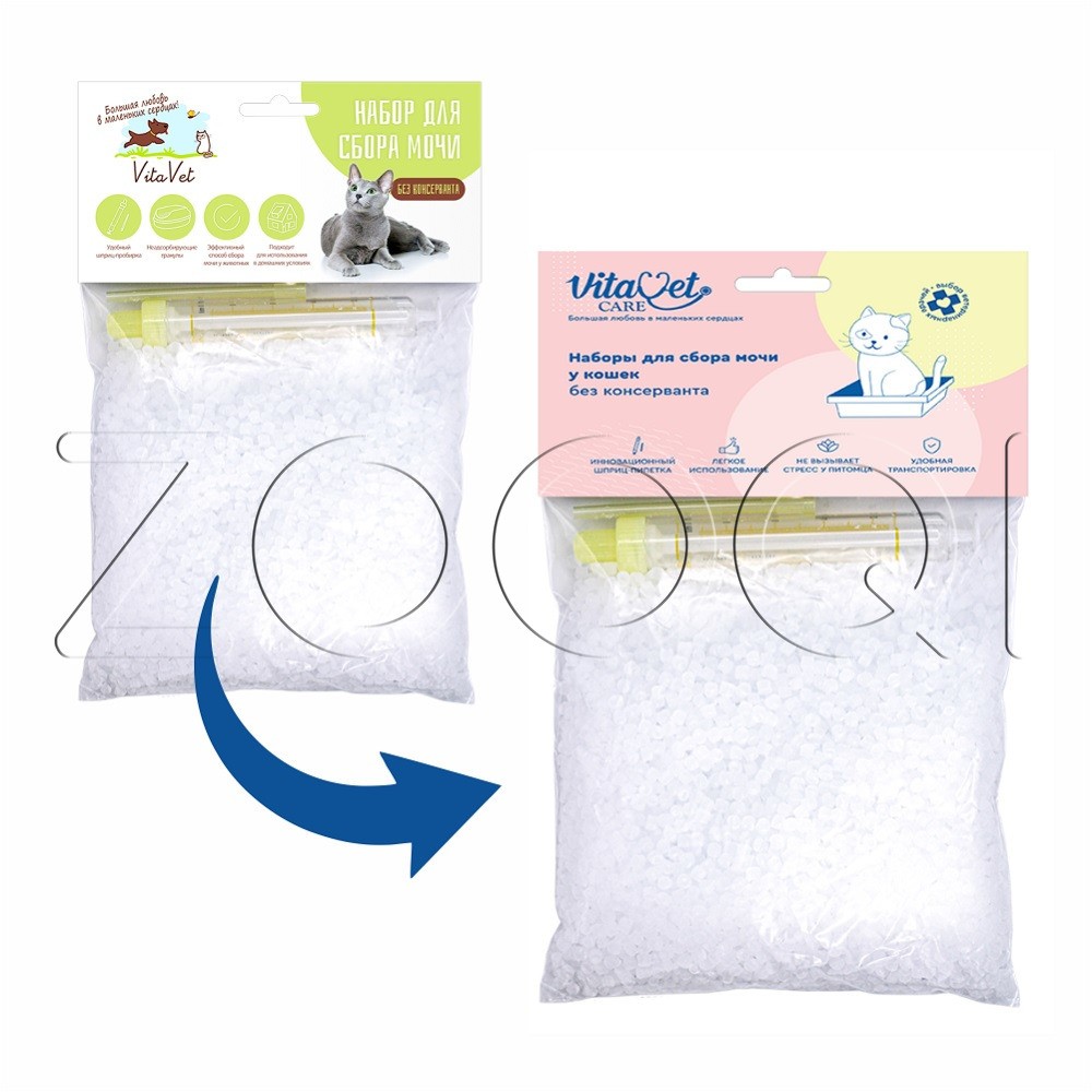 VitaVet Care Набор для сбора мочи для кошек с пластиковыми гранулами, поможет неинвазивно, комфортно и с легкостью осуществить сбор мочи вашего питомца для дальнейшей транспортировки и исследований. Пластиковые гранулы имитируют наполнитель, поэтому ваш питомец не испытывает дискомфорта при мочеиспускании.