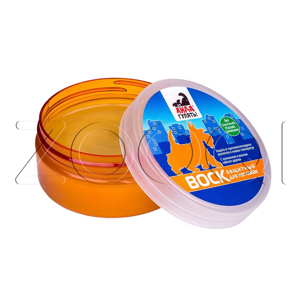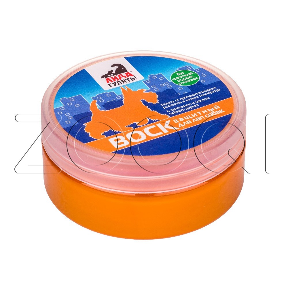 Айда Гулять! Воск защитный предназначен для защиты лап собак во время прогулки от неблагоприятного воздействия противогололедных реагентов, бензина, мазута, низких температур. Воск предотвращает травмирование кожи льдом, снегом, гравием, песком, асфальтом. Проблемы с лапами у собак (плохо заживающие раны, трещины, воспаления, раздражения) получают в настоящее время все более широкое распространение, особенно при выгуле собак в крупных городах.