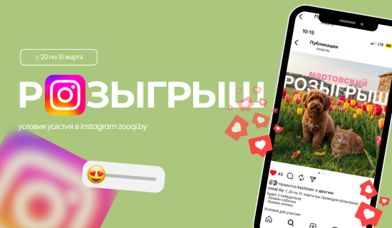 С 20 по 31 марта в нашем инстаграм аккаунте @zooqi.by мы проводим розыгрыш подарочных боксов (1 для собаки и 1 для кошки)