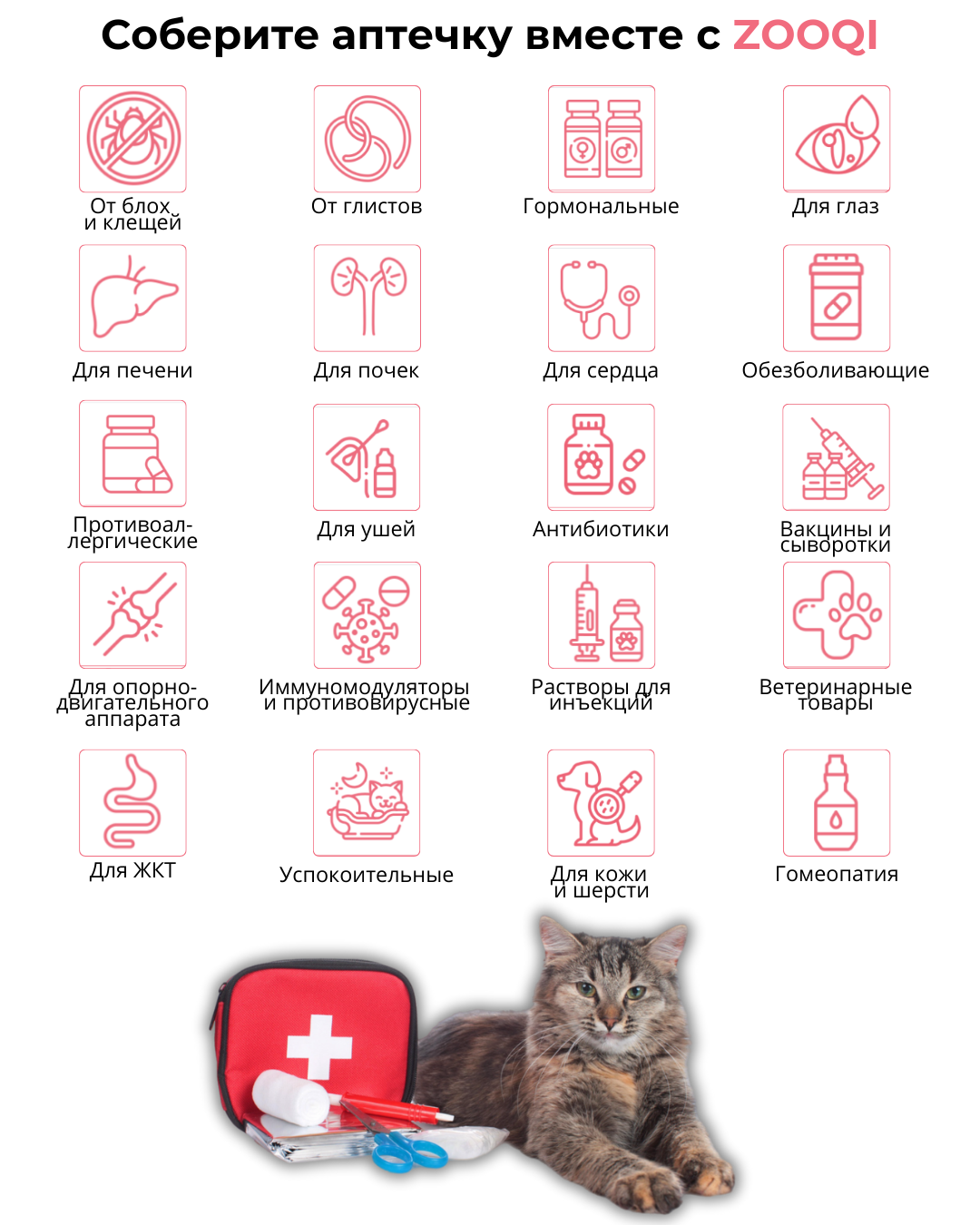 Собираем ветаптечку вместе с ZOOQI.BY, чтобы оперативно оказать питомцу первую помощь до визита к ветеринару, выполнить его рекомендации и сохранить привлекательный внешний вид шёрстки и когтей.